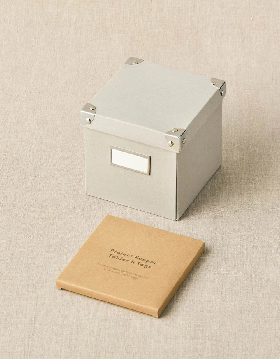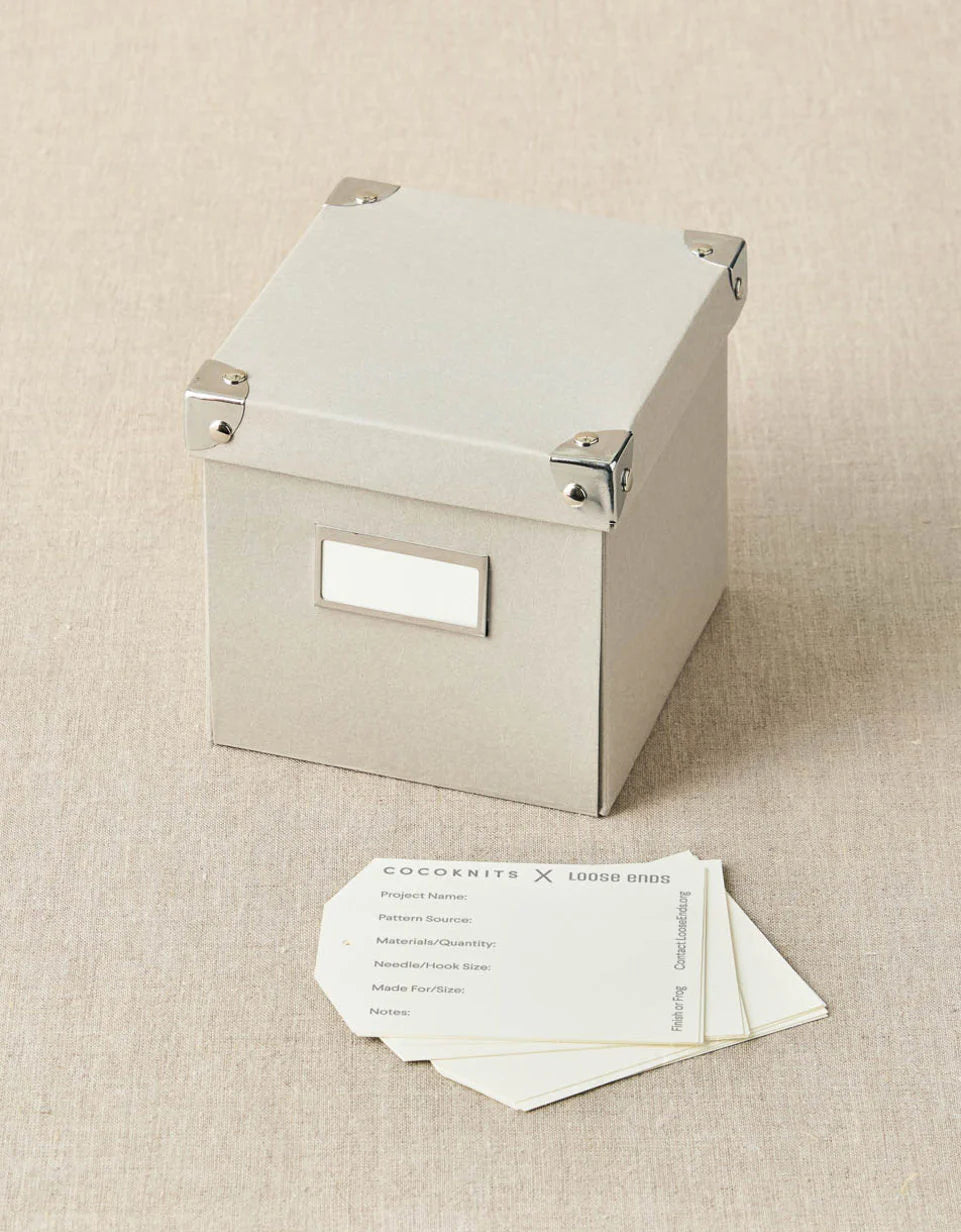 Use the folders and tags to keep all the details of any project organized in this retro style box. Knitting, crochet, quilting, needlework, and more - record the tools, pattern, sizes, materials, recipient, and other important information. Keep the tag with the project for notes on the go, then file in the Project Keeper when complete. The folders can hold a swatch, yarn labels, fabric samples and other materials, along with the project tag.